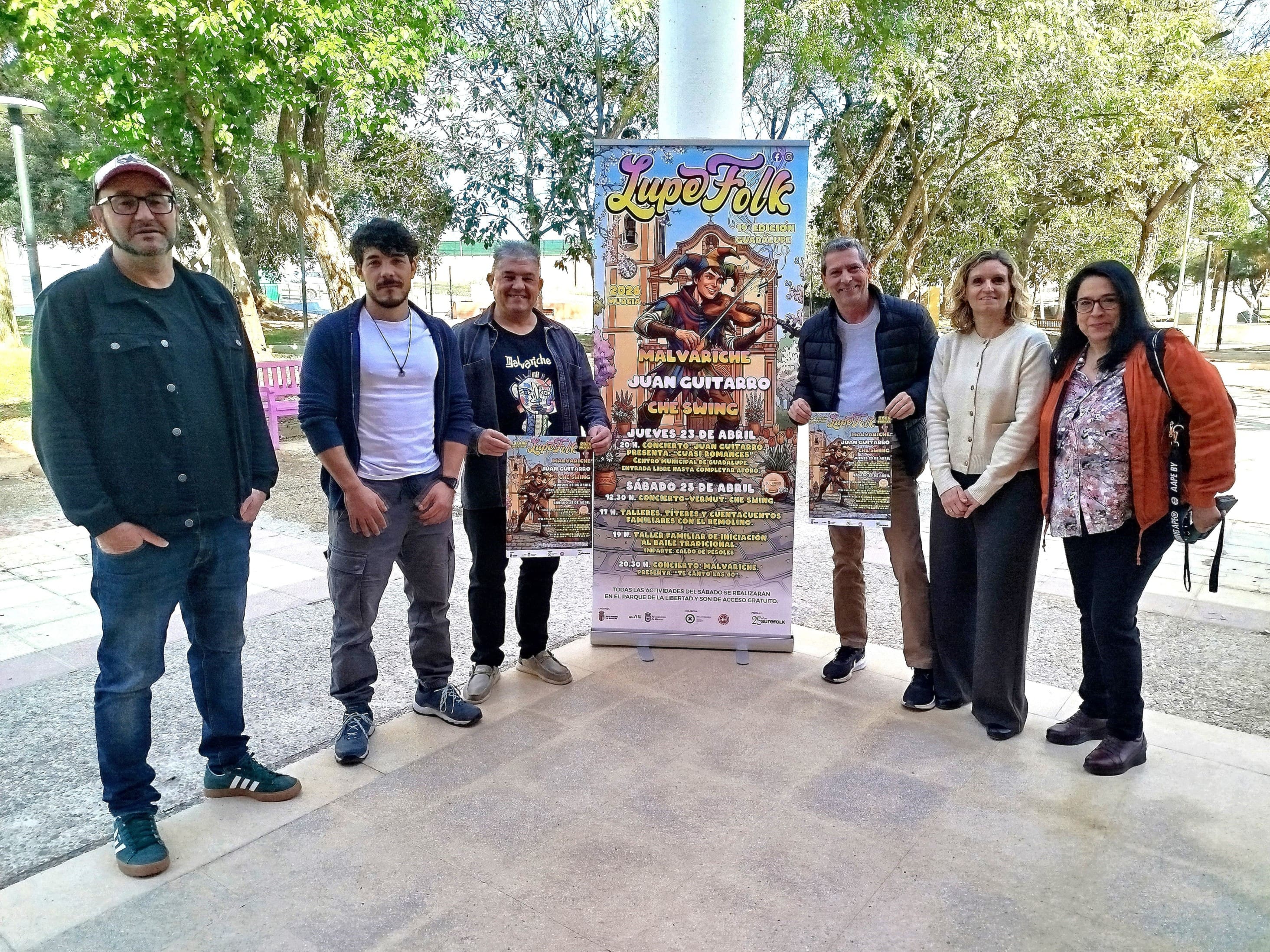 El jueves 26 de marzo, se presentó la edición nº 19 del Festival Lupefolk en el Centro Cultural de Guadalupe (Murcia). Convocados por el presidente de la Junta Municipal de Guadalupe, Juan A. Gómez Gambín, estuvieron presentes la coordinadora del Centro Cultural de Guadalupe, respresentantes del grupo Malvariche, Fernando Órdoñez diseñador del cartel del festival y Alicia Baltsar representante de Surefolk.